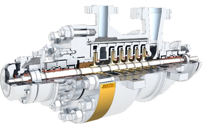 JHDT系列泵為雙殼體、徑向剖分、多級、兩端支承離心泵。符合API610-11th標準。進出口法蘭尺寸滿足ANSI或ISO標準。密封腔的設計符合ISO21049(API682)密封標準,沖洗、冷卻、加...